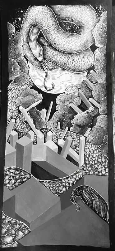My illustration-based work, which showcases my love of experimenting with styles and mediums like digital art, painting, ink, markers, watercolors, and colored pencils.